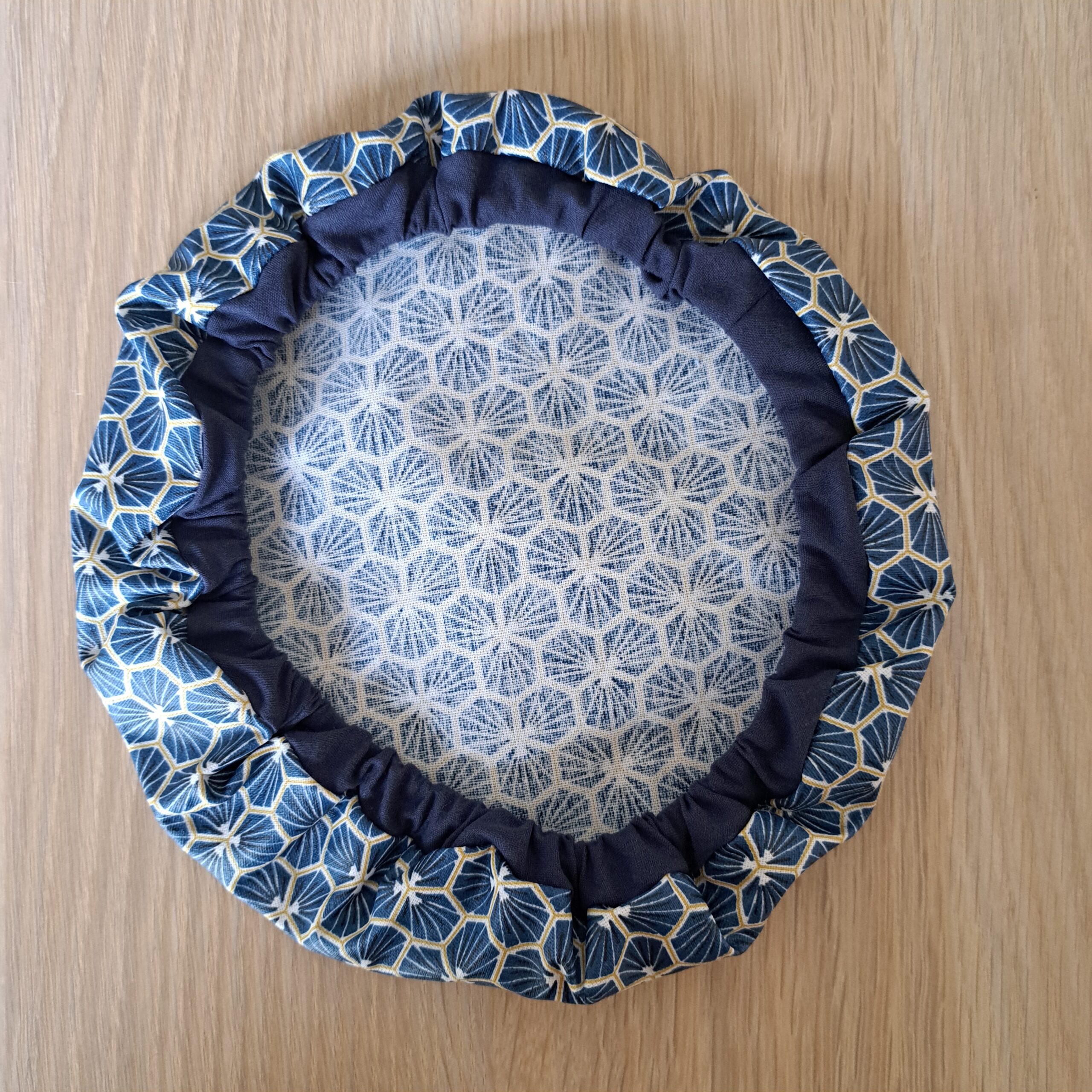 5 Charlottes couvre plats pétales géométriques bleu pétrole