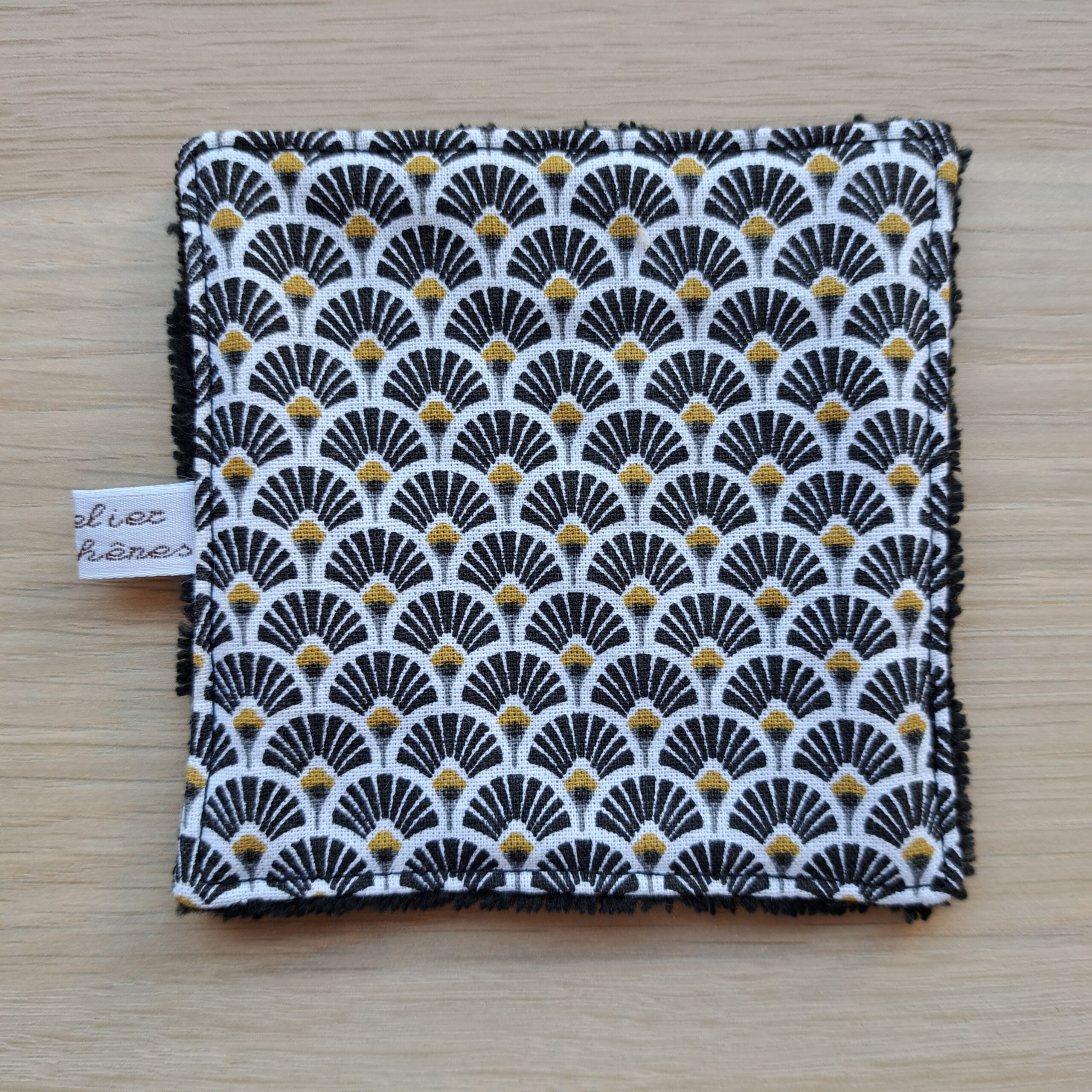 7 lingettes lavables éventails noirs + panier de rangement assorti