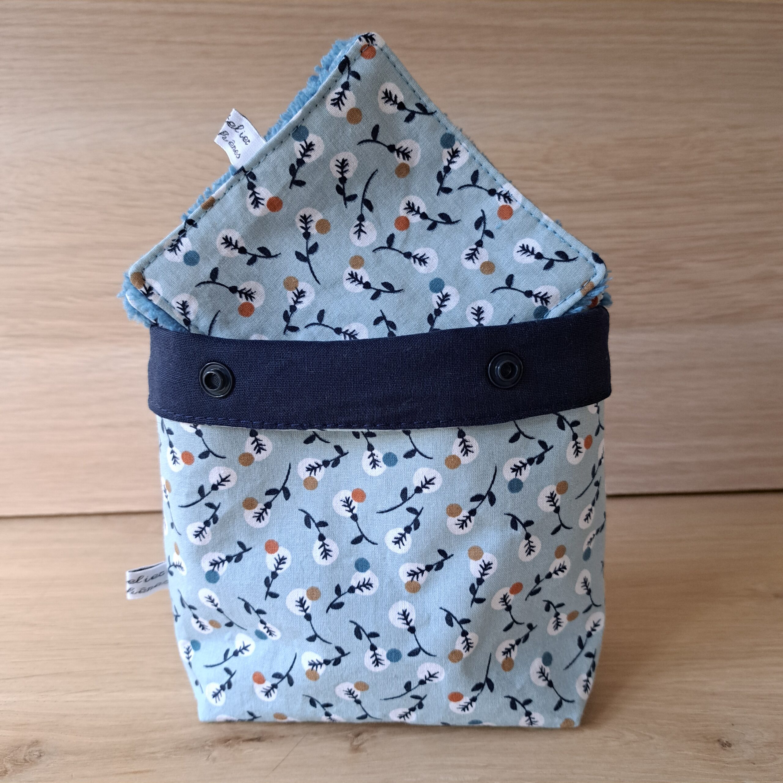 Ce panier à lingettes assorti est idéal pour ranger ou transporter vos lingettes lavables ou le poser sur un meuble ou une étagère. Il est refermable par 2 pressions