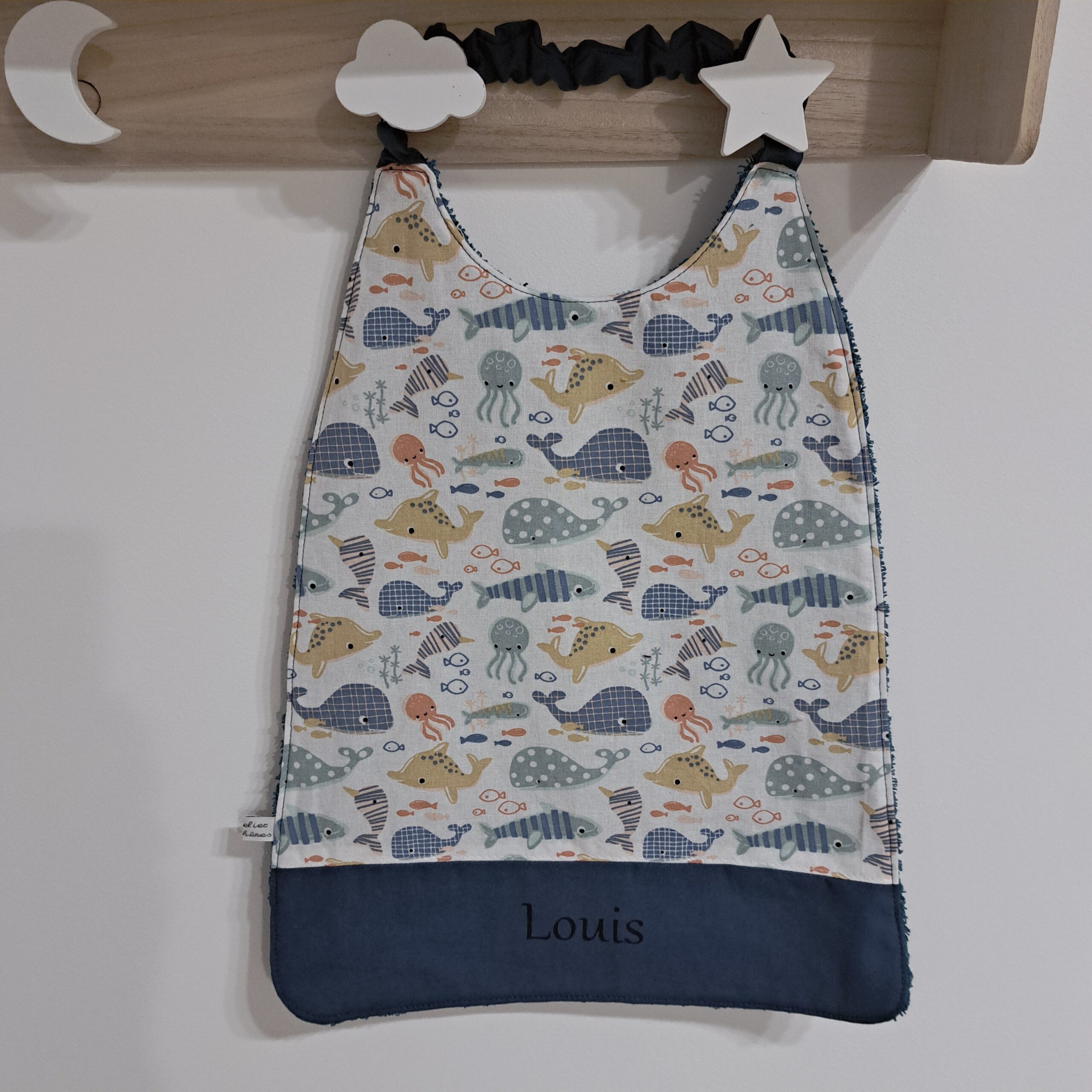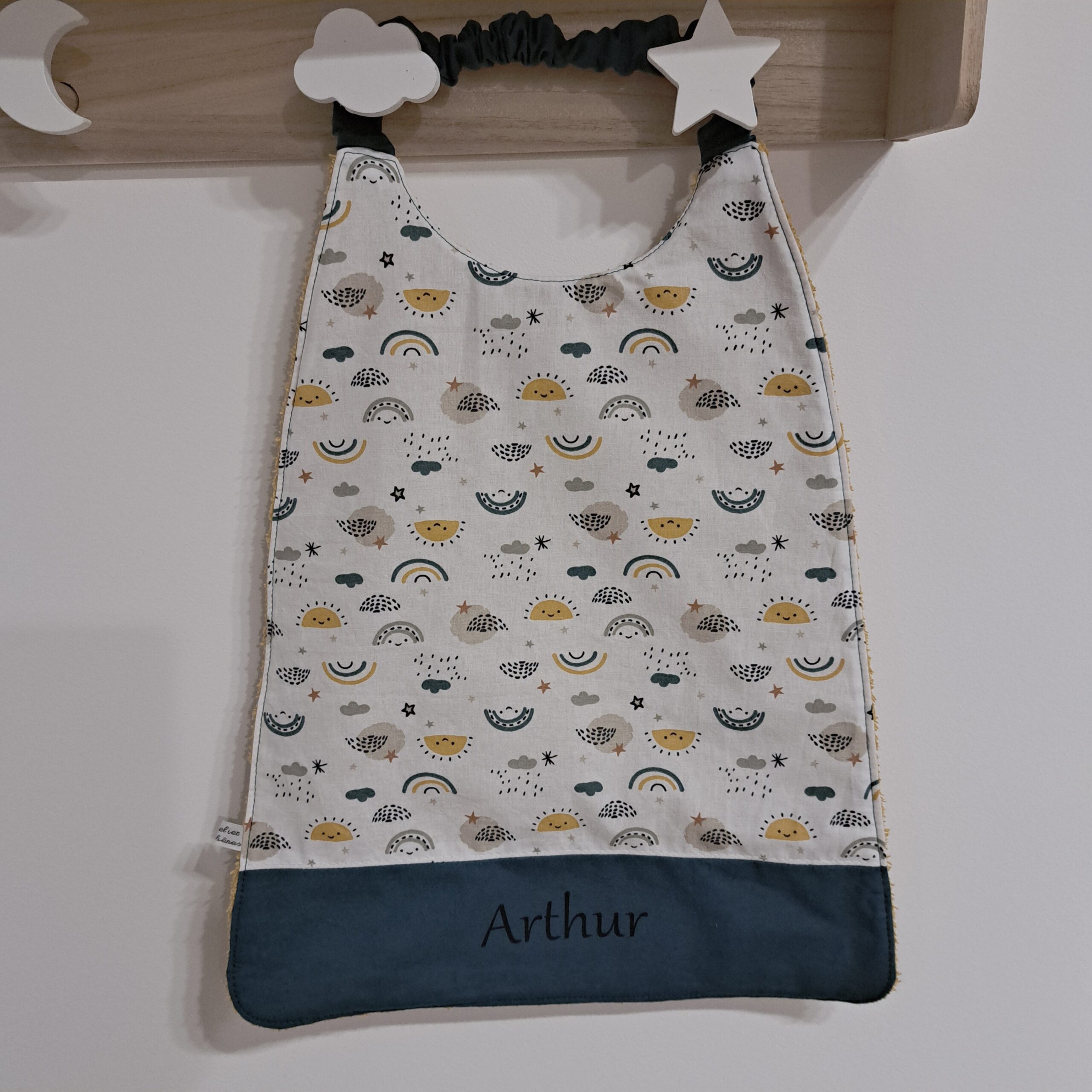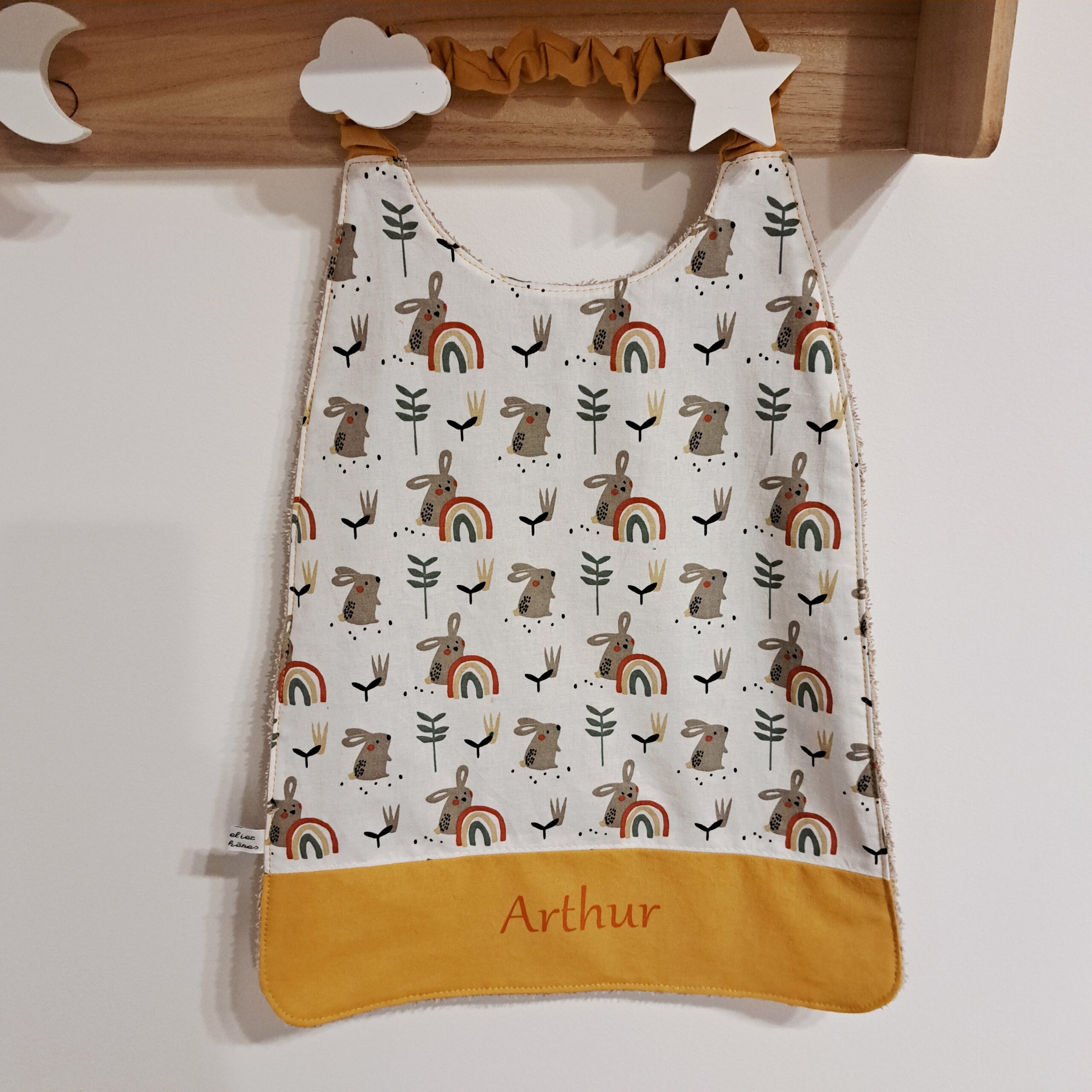 Serviette de table tour de cou élastiqué personnalisable + prénom (Délai d’expédition 2 semaines)