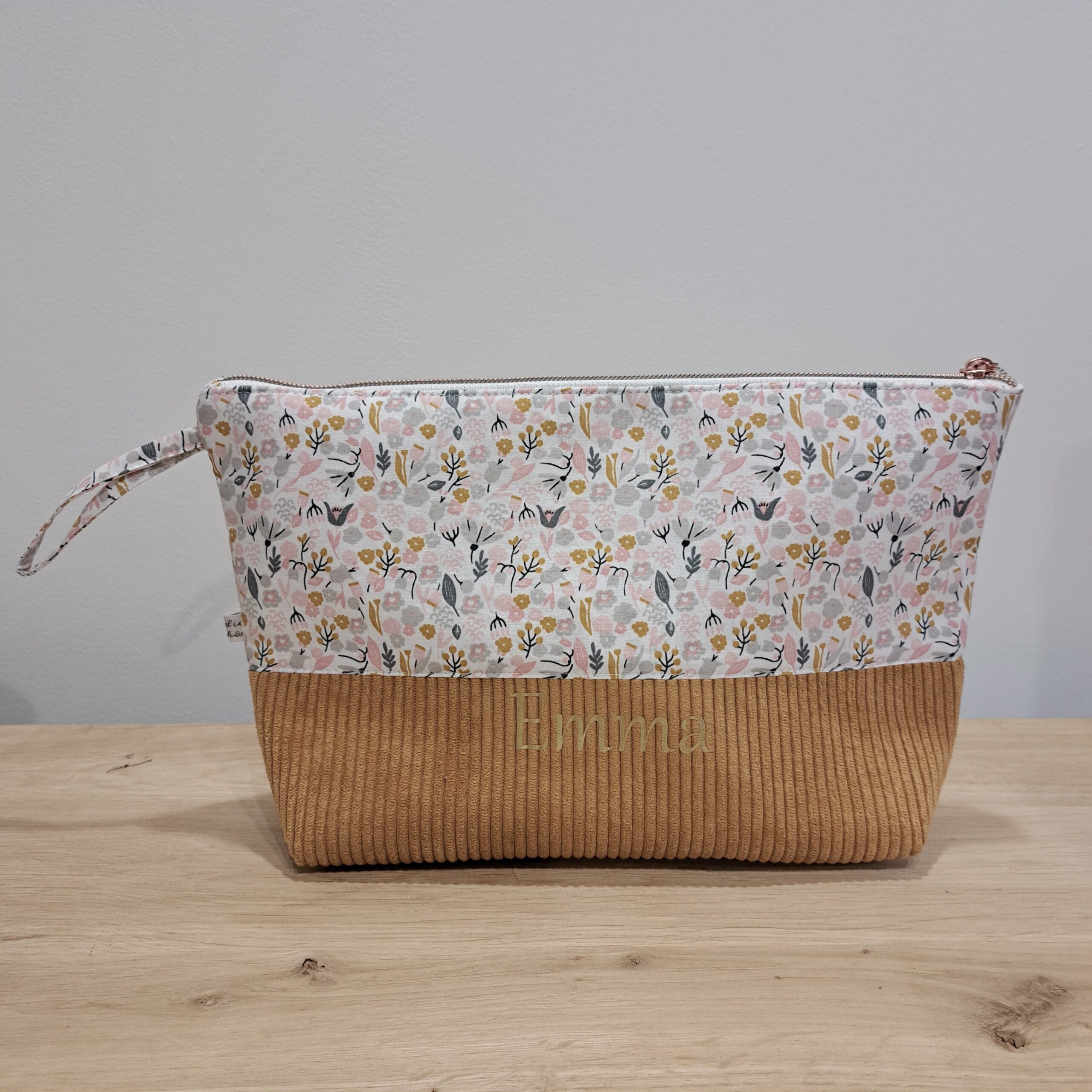 Composez votre trousse de toilette en sélectionnant les tissus de votre choix ainsi que le prénom à inscrire (en option +4€)